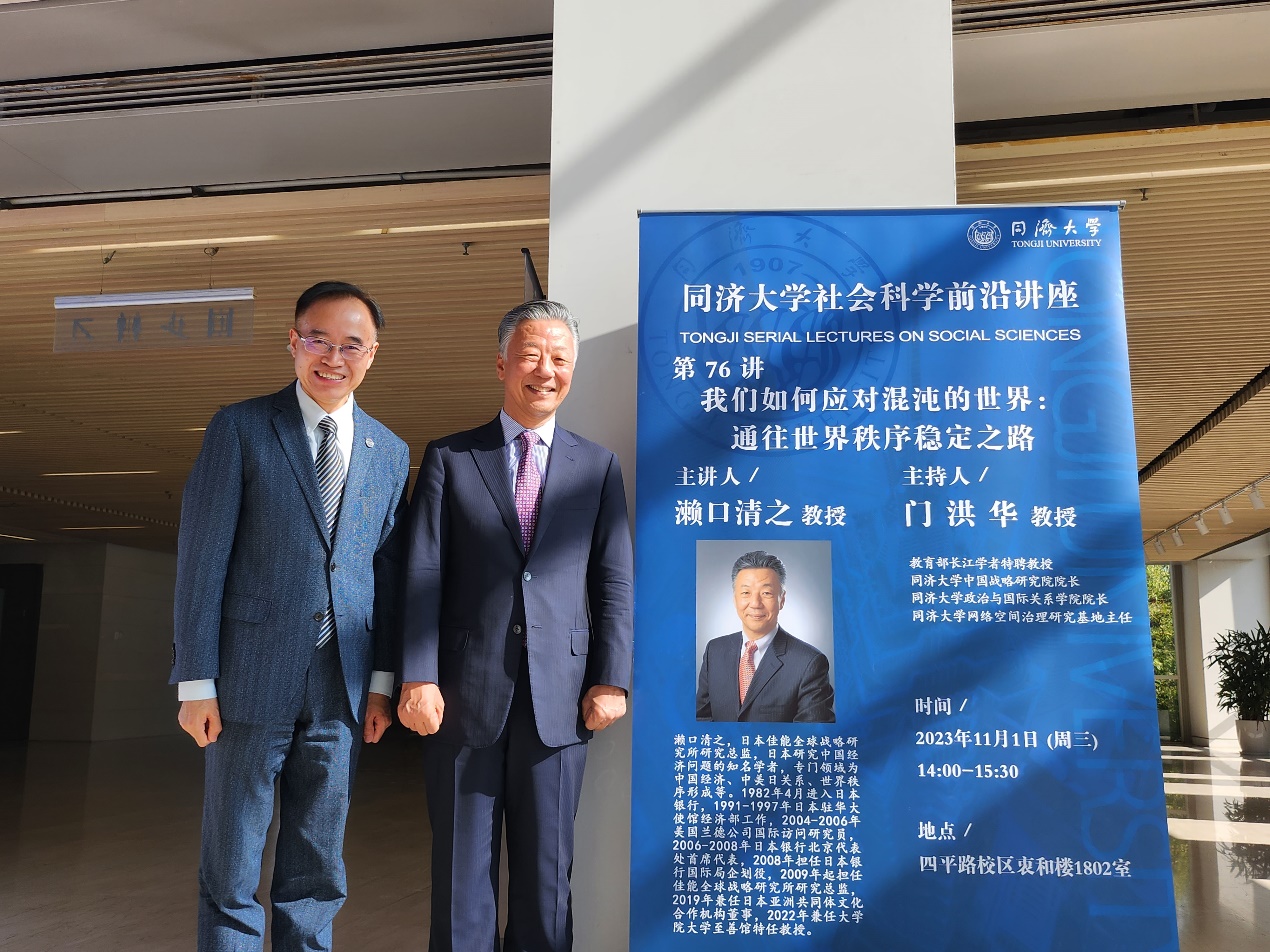2023年11月1日,由同济大学中国战略研究院/半岛online(中国)主办的同济大学社会科学前沿讲座第76讲在同济大学衷和楼1802会议室成功举办。本次讲座邀请日本佳能全球战略研究所研究总监、日本知名中国经济问题学者濑口清之先生作题为“我们如何应对混沌的世界:通往世界秩序稳定之路”的主题演讲。本次讲座由教育部长江学者特聘教授门洪华院长主持,同济大学半岛online(中国)教师、博士生、硕士生50余人参加了此次讲座。