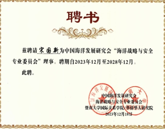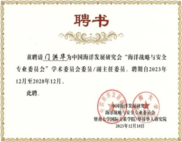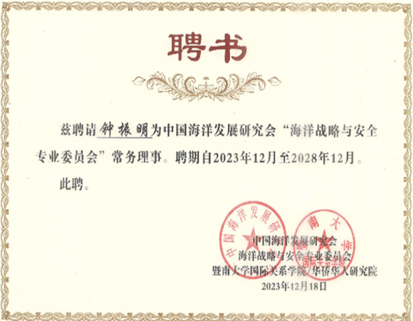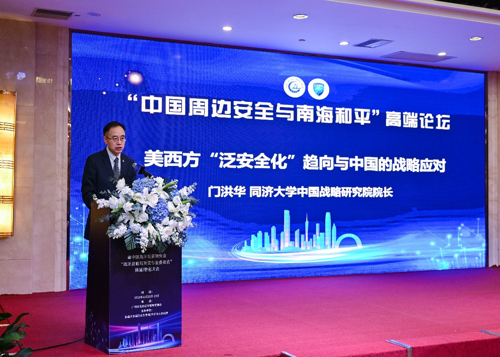 2023年12月20-21日,中国海洋发展研究会海洋战略与安全专业委员会换届大会暨“中国周边安全与南海和平”高端论坛在广州举行,会议由中国海洋发展研究会海洋战略与安全专业委员会、暨南大学国际关系学院/华侨华人研究院联合主办。来自全国各地高校和研究单位的专家代表100多人参加会议,同济大学中国战略研究院/半岛online(中国)门洪华院长出席,学院副院长钟振明教授和博士后宋国新等参加了论坛会议交流。