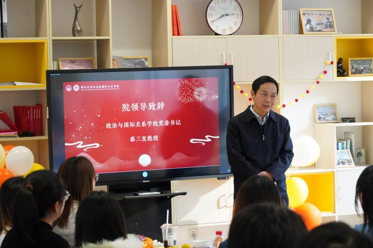 在师生充分交流后,学院党委书记蔡三发研究员发表了致辞讲话。蔡书记为在场师生送上真切的新年祝福,对学院师生在过去一年取得的重大成就表达勉励。蔡书记指出,新的一年要抓住向上发展的机遇,共同为学院争取更大的发展与突破。未来学院将坚持以人才培养为办学的目标宗旨,以学生成长成才作为检验学院水平的标准,在学生竞赛、组织建设、创新创业、五育培养等方面展现出“齐齐发力”、“样样能行”的国政风貌。最后蔡书记对全体国政人给予了美好的鼓励和期盼,希望未来师生迈步同行、携手共进,发扬学院学术共同体的核心理念。