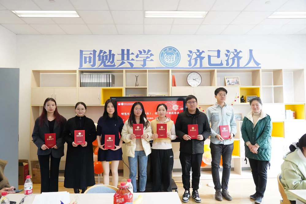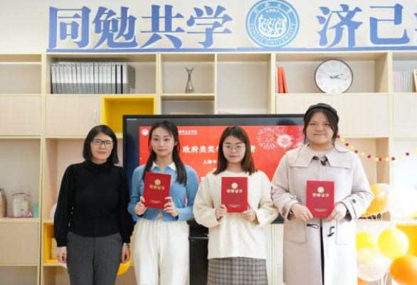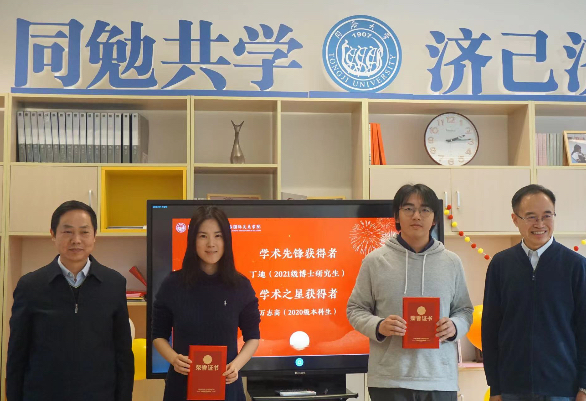 随后,岑昱玮老师依次宣读学院获得2023年同济大学学术先锋、2023年同济大学学术之星,2022-2023学年本硕博政府类奖学金、硕士校级奖学金,2022-2023学年同济大学优秀学生(标兵)、优秀学生干部的学生名单,各位领导老师为获奖学生颁奖祝贺。
