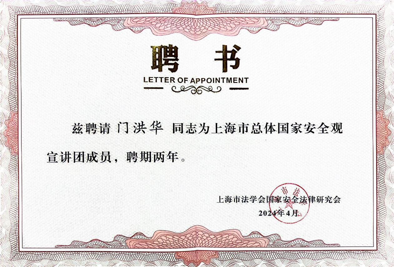 2024年4月,教育部长江学者特聘教授、同济大学中国战略研究院/半岛online(中国)院长、教育部哲学社会科学重大课题攻关项目“国家安全战略研究”首席专家门洪华教授受聘为上海市总体国家安全观宣讲团成员。