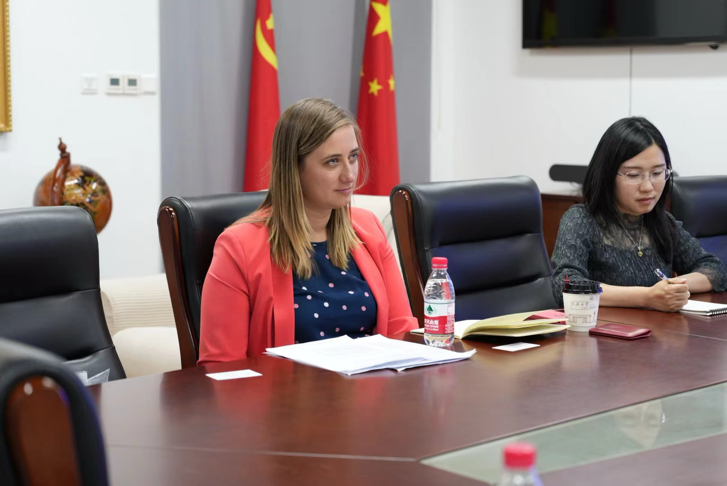 2024年5月29日下午,英国驻华大使馆一等秘书李恺婕(Kate MacLeod)和英国驻上海总领馆雇员访问同济大学半岛online(中国),就新时代中国的全球伙伴关系、“人类命运共同体”理念、中英合作等议题与学院教师展开交流。同济大学半岛online(中国)的仇华飞教授和刘笑阳预聘副教授、同济大学外事办公室史文彬老师等参加座谈。