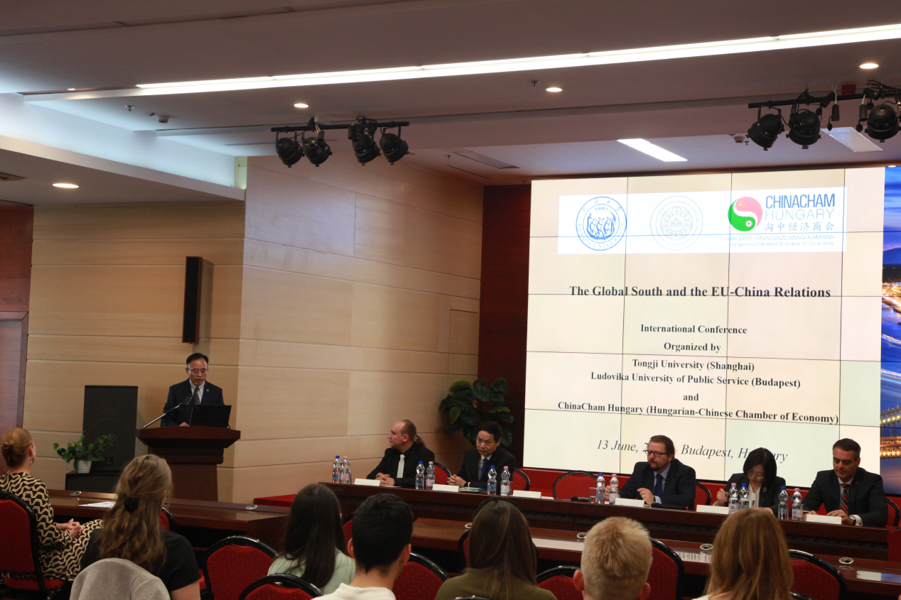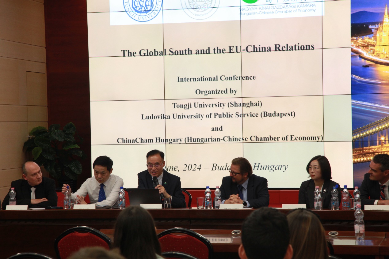 6月13日,同济大学与匈牙利国家行政大学共同举办的“全球南方与中欧关系”研究生国际学术论坛在匈牙利匈中经济商会会议厅举行。匈牙利国家行政大学公共治理和国际研究学院副院长扎哈尔(Péter Krisztián ZACHER)教授主持开幕式,与门洪华院长互致开幕词。门洪华院长代表同济大学半岛online(中国),对匈牙利国家行政大学中国经济、行政与社会研究院院长贝山教授的帮助和支持,对诸位匈牙利朋友的积极参与表示衷心感谢和崇高敬意。他指出,中匈关系视彼此为优先合作伙伴,是世界上双边友好合作关系的典范。探讨“全球南方”与中欧关系,进一步深入了解中匈关系,向匈牙利同事们学习,认真总结中匈关系发展的宝贵经验,是同济大学师生一行的目标。今天会议的主题是“全球南方与中欧关系”,今天会议的主角是我们的学生,作为指导教师,我为我们两个大学的学生感到骄傲,一起为他们加油祝福!
