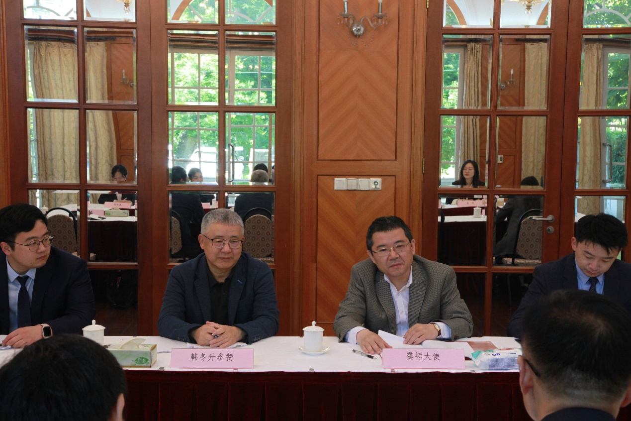 龚韬大使、韩冬升参赞与门洪华院长、蔡三发书记交流了同济大学与匈牙利国家行政大学的进一步合作愿景。门洪华院长结合自身学术和工作经历,就中国外交战略的理解与龚韬大使进行了深入的探讨。龚韬大使和与会同学进行交流,细致回答了同学们提出的问题。