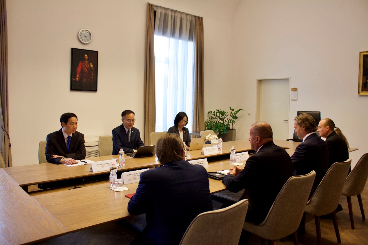6月13日下午,门洪华院长、蔡三发书记、宋黎磊教授一行与匈牙利国家行政大学副校长、军事科学学院院长拉兹洛·科瓦奇(László Kovács)将军、国家行政与国际关系学院执行院长巴勒斯·巴托基·贡奇(Balázs Bartóki-Gönczy)教授、公共治理和国际研究学院副院长扎哈尔以及中国行政、经济与社会研究院贝山院长进行了合作会谈。