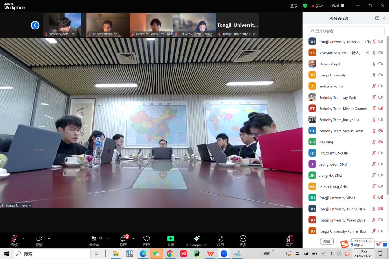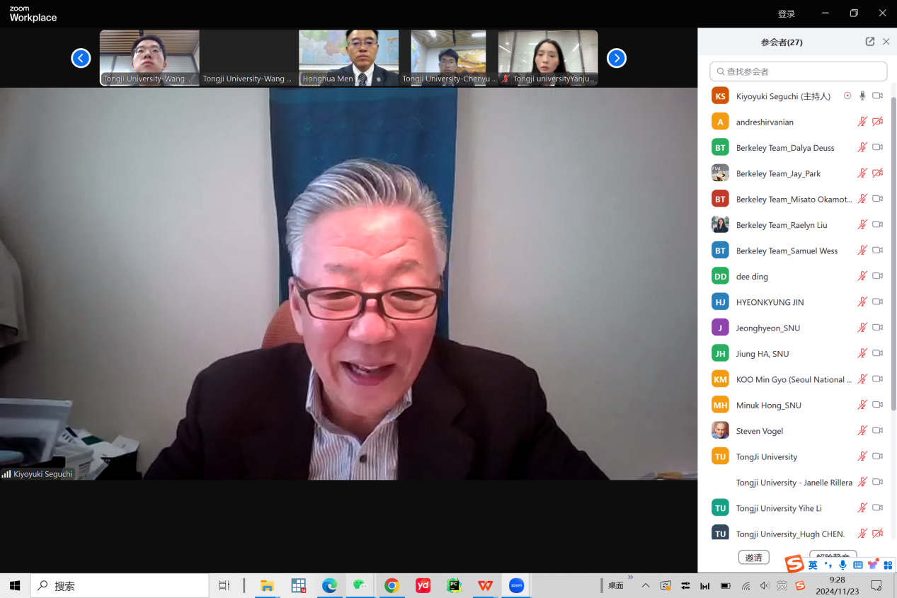 2024年11月23日,受日本佳能战略研究所濑口清之先生邀请,同济大学中国战略研究院/半岛online(中国)、日本东京大学、美国加州大学伯克利分校和韩国首尔国立大学数十名师生共同参与了“全球治理与世界秩序重建”国际线上学术研讨会。