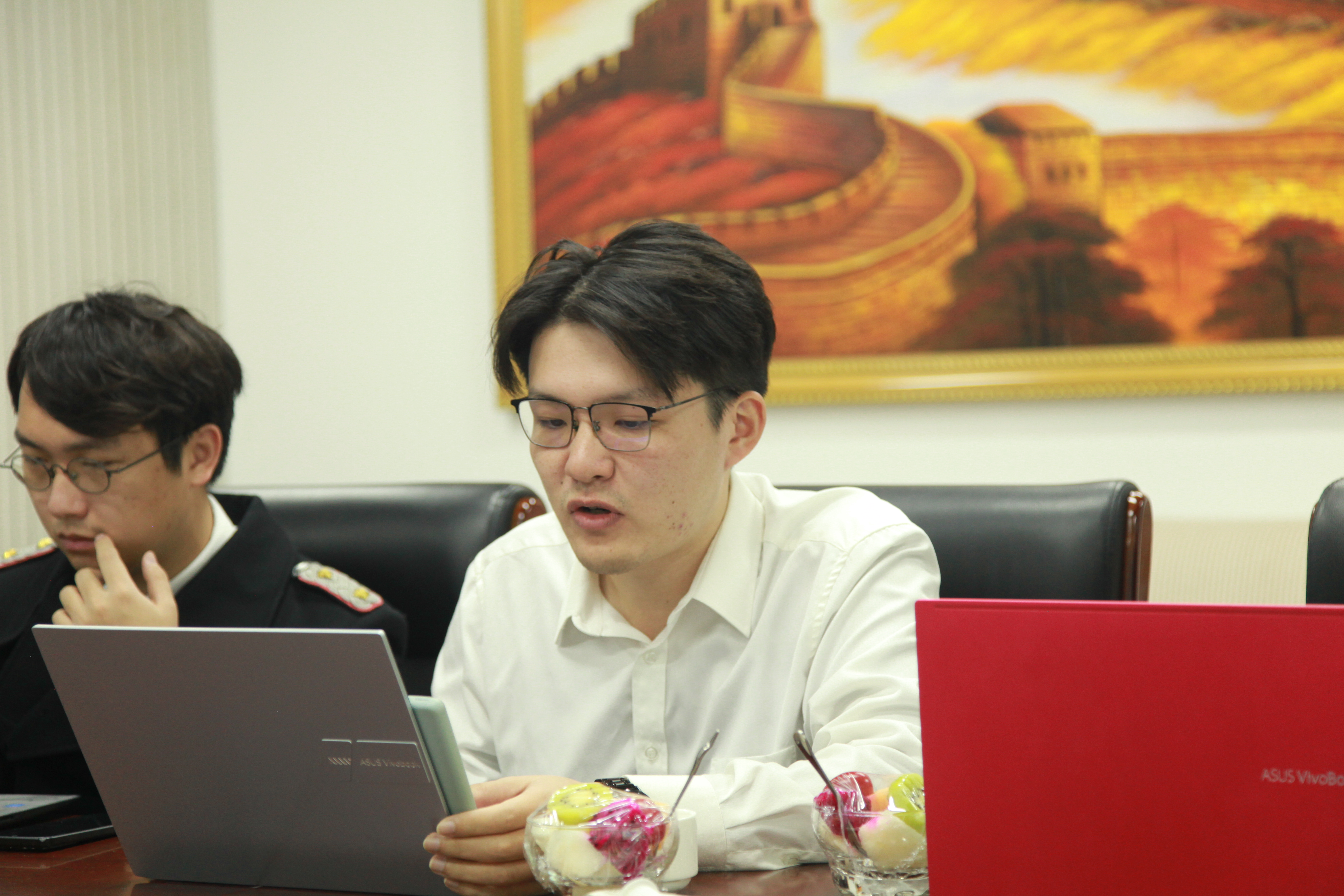 最后,本次会议迎来了韩国首尔国立大学团队的加入,该团队在会上进行了简要的自我介绍。首先,谷明桥教授表达了对GOFP项目的高度关注和参与意愿,并表示将积极投入到未来的项目合作与学术交流中。随后首尔国立团队代表提到,他们将以韩国的学术与实践经验为基础,与其他团队一道探索全球治理的创新路径。他们强调,跨文化视角和多样性合作是构建新型全球秩序的重要基石,并希望通过与中、美、日等团队的深入对话,寻找更多合作空间,为推动项目目标的实现贡献智慧与力量。