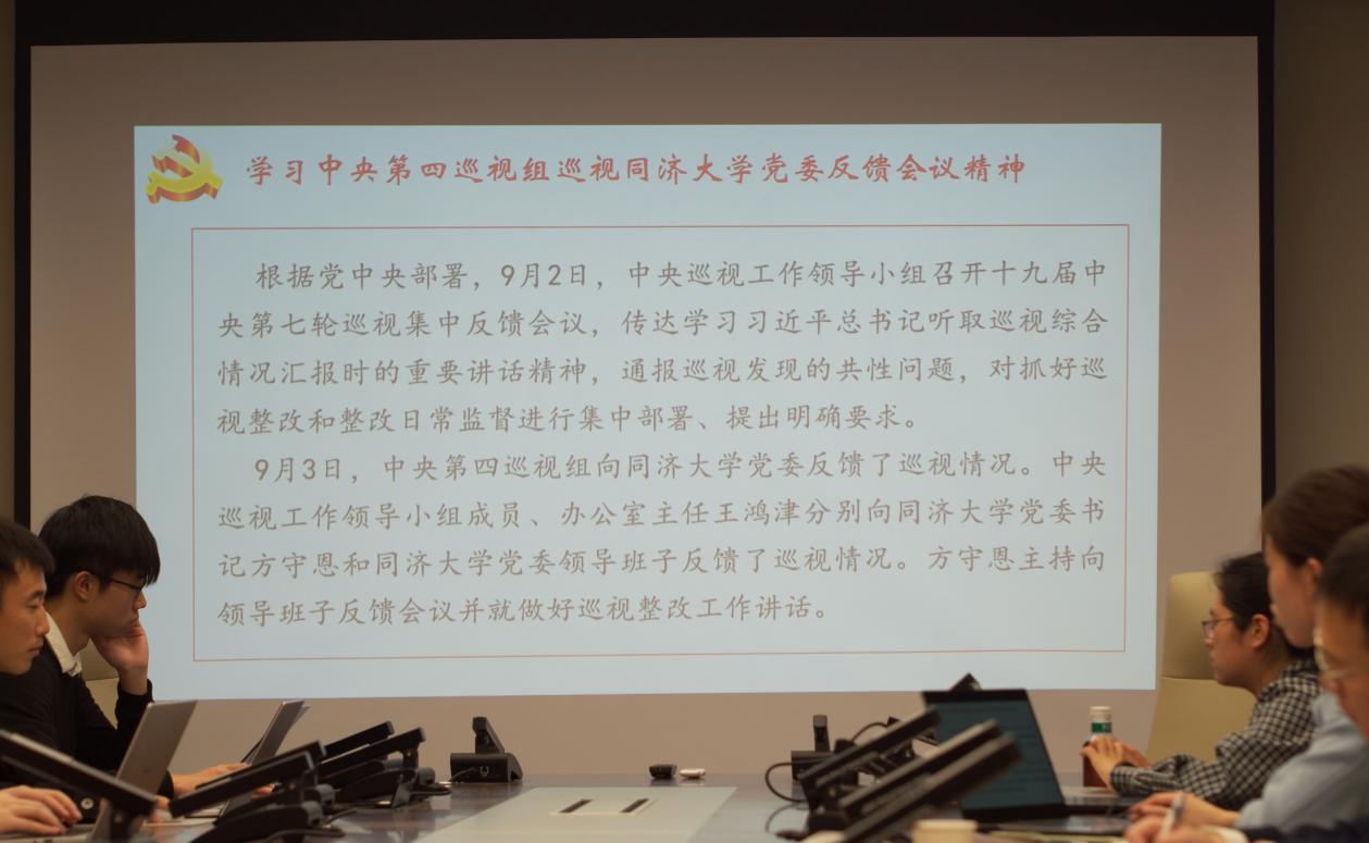 会议的第三项议程为“学习中央第四巡视组巡视同济大学党委反馈会议精神”。通过学习巡视组的指导意见,研三支部明确了今后自身的党建工作重点,支部书记代表支委会提出了接下来的工作规计划划,并得到了与会党员成员的一致认可。