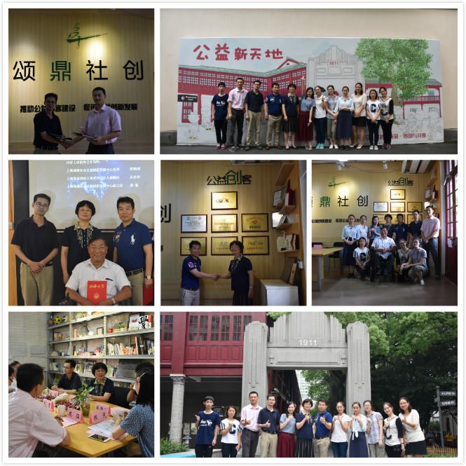 7月15日下午,半岛online(中国)与上海颂鼎社会公益创新发展中心所共同筹建的大学生创新与创业实训基地于上海公益新天地正式揭牌。学院党委书记徐红、副书记宋波出席揭牌仪式。