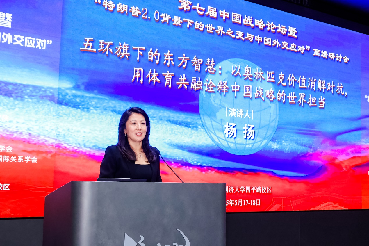 国际奥委会委员、世界反兴奋剂组织副主席、十四届全国政协委员杨扬女士做了题为“五环旗下的东方智慧:以奥林匹克价值消解对抗,用体育共融诠释中国战略的世界担当”的主旨演讲。杨扬女士介绍了国际奥委会的代表结构,分享了从运动员经历到参与国际体育组织的个人旅程,强调运动员的声音在国际事务中重要性。通过回忆自己在国际会议上的经历,指出竞技场外的竞争激烈,特别是如何处理国家之间的政治影响。她基于自身在国际滑联和国际奥委会的任职经历,谈到体育被政治化的问题,尤其是在国际场合中如何应对对中国形象的抹黑。最后,杨扬女士表达了对体育作为团结和友谊桥梁的高度认可,反对政治干预体育的观点,并希望通过运动推动全球的和平与发展和人类文明交流互鉴。