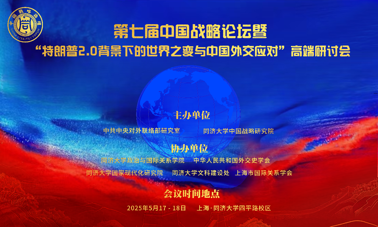 2025年5月17-18日,由中共中央对外联络部研究室和同济大学中国战略研究院联合主办的第七届中国战略论坛暨“特朗普2.0背景下的世界之变与中国外交应对”高端研讨会在同济大学顺利召开,来自北京大学、清华大学、中共中央党校、中国社会科学院、中央党史和文献研究院、中国人民解放军国防大学、中国现代国际关系研究院、复旦大学、上海交通大学、同济大学、南京大学、南开大学、中国人民大学、武汉大学、山东大学、厦门大学、兰州大学、国防科技大学、华中师范大学、云南大学、对外经济贸易大学、上海外国语大学、国际关系学院、华侨大学、上海社会科学院、上海国际问题研究院等50余家院校机构的近80位专家学者齐聚同济大学,展开学术交流、进行深入研讨、汇集战略智慧。