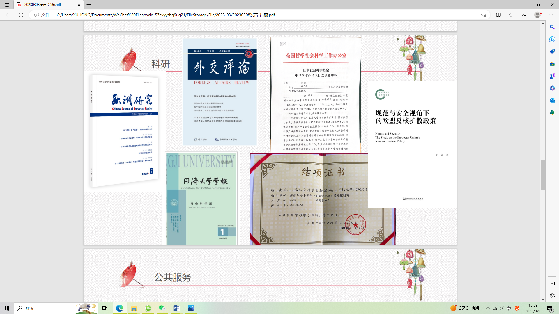 在承担繁重的公共服务的同时,吕蕊老师兢兢业业做好立德树人本职工作。在教学方面,她多年来教学工作量饱满,所授多门课程被评价为优秀,主持并参与多项教改课题。她关爱学生,受到学生的衷心喜爱。在科研方面,她致力于科研工作服务国家发展战略的目标,发表多篇核心期刊论文,主持2项国家社科基金,出版专著1部,数份决策咨询报告被中办和国安办录用。在人才培养方面,她目前在读研究生10人,其中留学生2人,本科生6人。她连续5年担任本科新生导师。