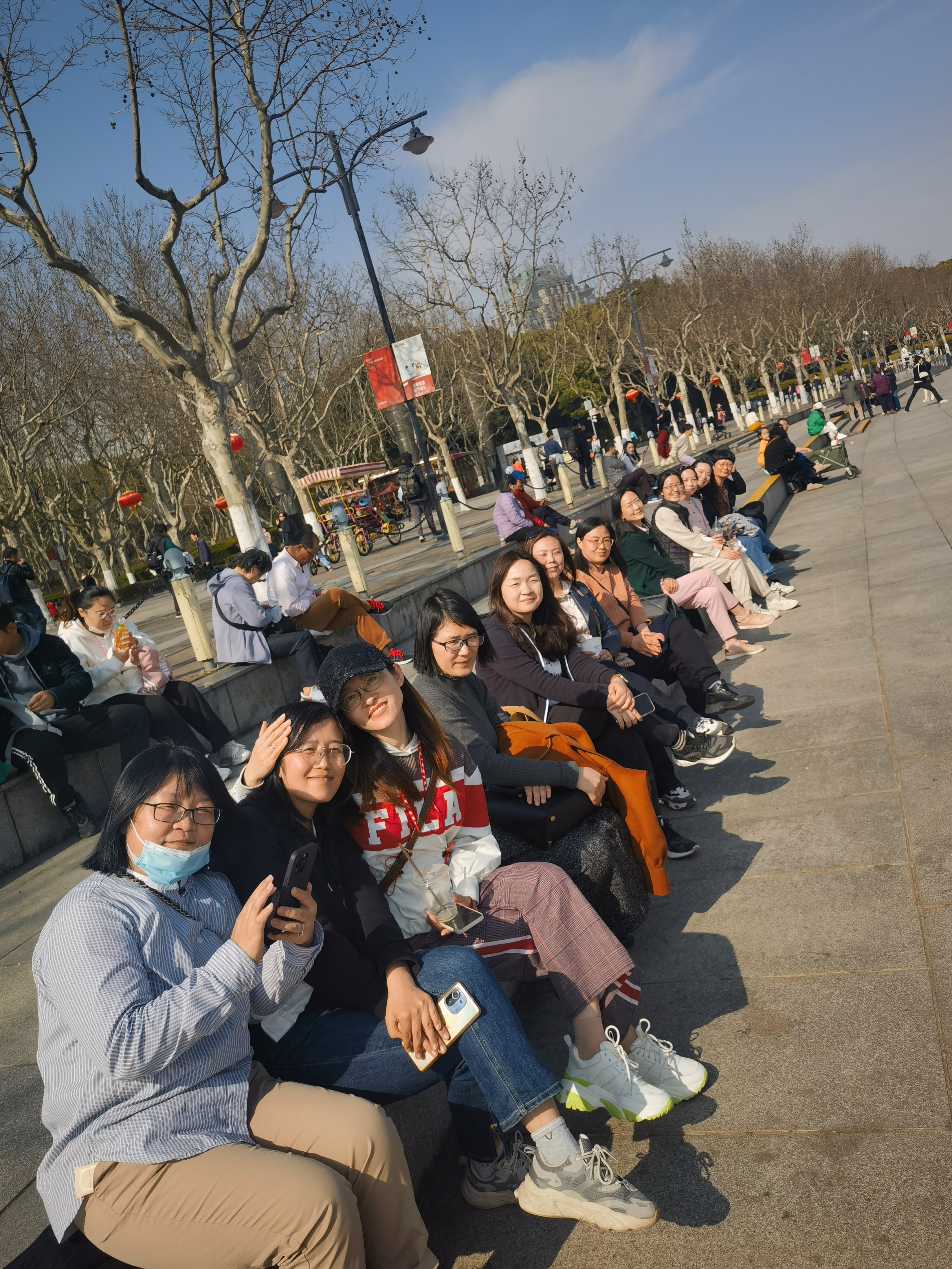初春时节,空气清新,阳光明媚,世纪公园梅花绽放。在梅园的健步行过程中,女教师们纷纷打开手机,拍摄梅花盛放的美丽瞬间,感到由衷的快乐和愉悦。