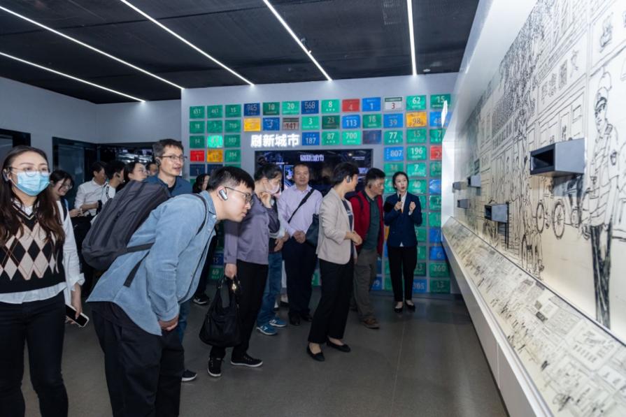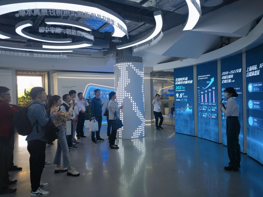 根据活动安排,大家从上海船厂旧址出发,途径杨树浦自来水厂和东方渔人码头的滨江岸线,到达由同济大学设计师团队规划建设的“绿之丘”,参观设在二楼的新时代上海互联网企业党建创新实践基地及五楼观景平台。近年来上海市在推进互联网企业党建工作创新举措方面取得了显著成效,所有的现场展示都给大家留下深刻印象。