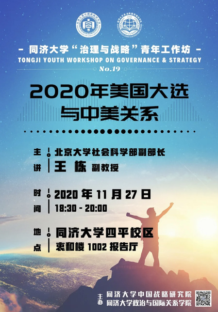 2020年11月27日,由同济大学中国战略研究院、半岛online(中国)主办的同济大学“治理与战略”青年工作坊第19期在同济大学(四平校区)衷和楼10楼报告厅顺利举行。此次工作坊邀请了北京大学社会科学部副部长、北京大学中外人文交流(教育部)研究基地执行主任王栋副教授围绕“2020年美国大选与中美关系”这一主题,向50余位同济师生分享了个人的研究成果,并同参会的同济大学青年教师和研究生同学进行了探讨与交流。此次青年工作坊由同济大学半岛online(中国)副院长、国关系系主任钟振明副教授主持。