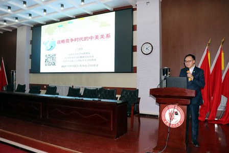 随后,门洪华院长围绕“战略竞争时代的中美关系”发表主题演讲。他从中美贸易战的演进历程说起,指出特朗普上台后片面强调“美国优先”,奉行单边主义和经济霸权主义,损害了中国和其他国家利益,动摇了全球多边贸易体制根基,引发多国谴责和共同反制。门洪华教授结合美国大选的新变化和拜登政府的可能选择,认为应对中美战略竞争要清醒认识中美实力对比,突出战略信任建设、坚持求同存异,坚决维护核心利益,积极扩大共同利益。在场的湟川中学学生对门洪华教授的权威解读表现出了浓厚兴趣,现场不时传出赞叹,门洪华教授深入浅出、风趣幽默的讲解无疑提升了青海学生对同济大学及其文科专业的认知和认可。