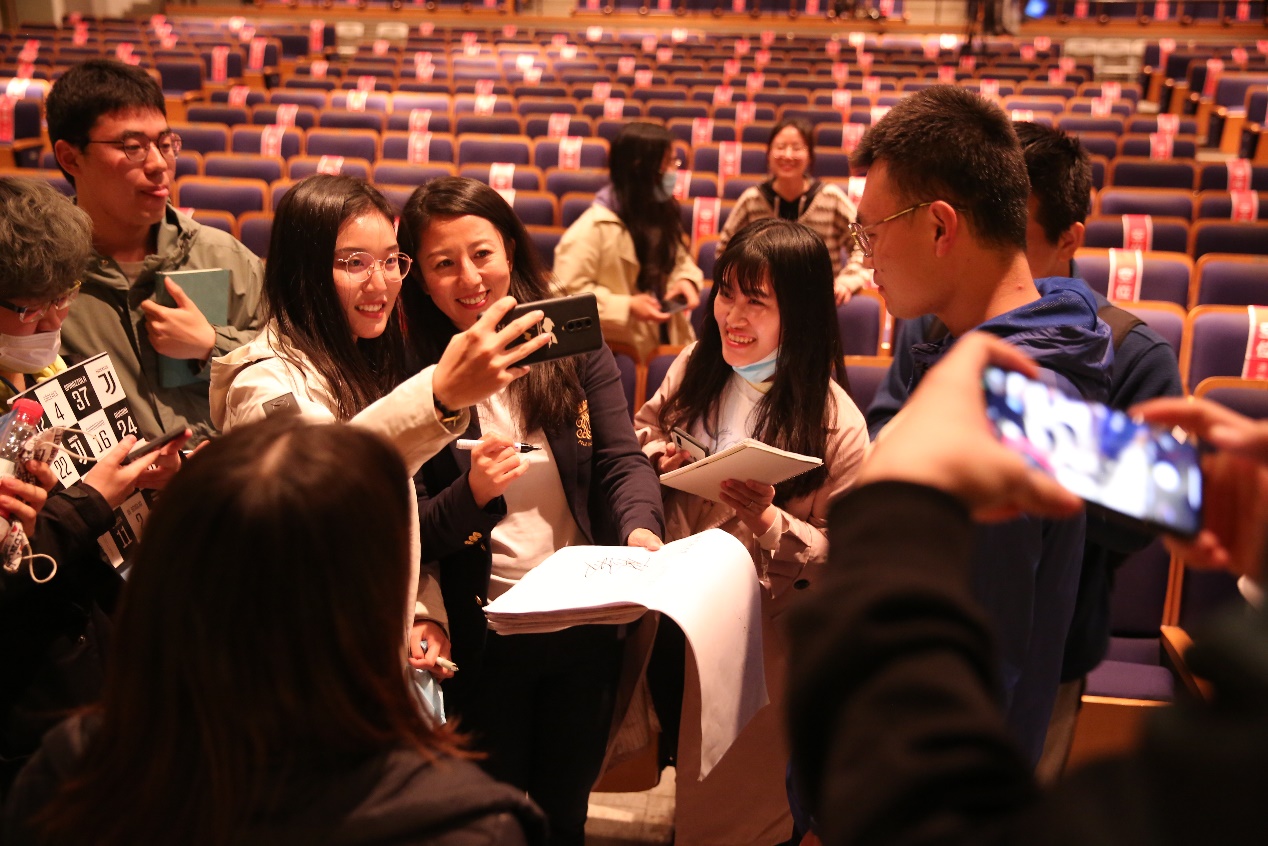在随后的互动环节,杨扬老师结合自身经历就“如何调节压力”、“如何在国际体育组织展现自己”、“如何帮助优秀的运动员在退役后成功转型”、“2022年冬奥会中国短道速滑运动员的预期表现”等师生感兴趣的问题进行了回答,赢得了阵阵热烈的掌声。