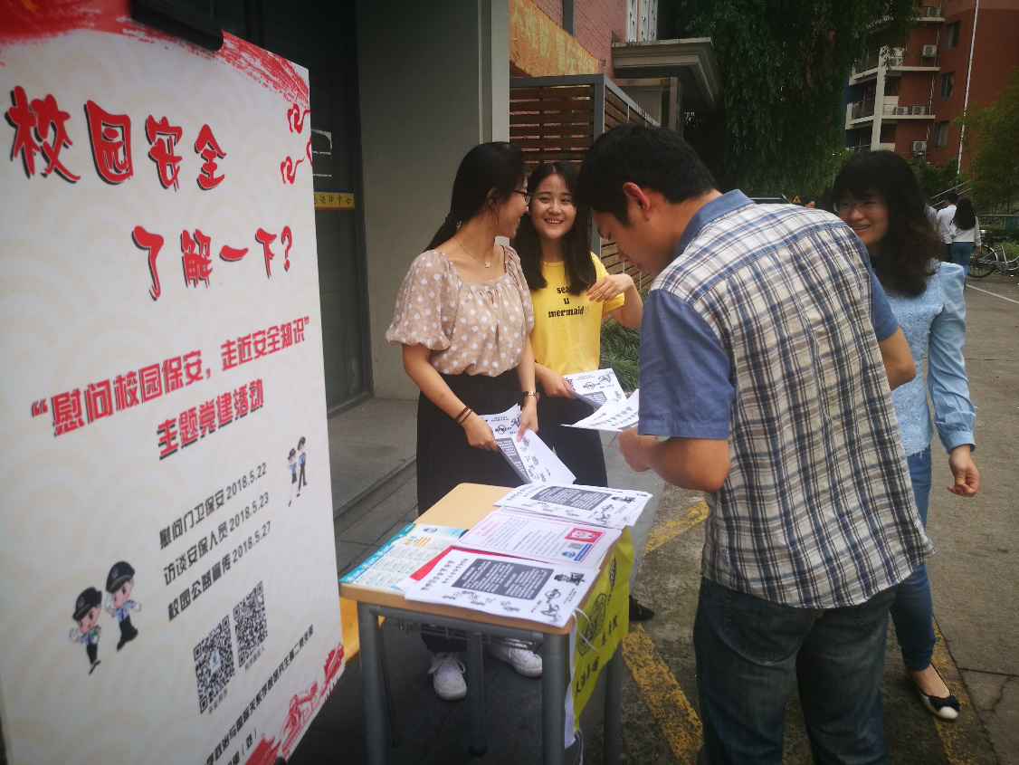 为深入学习贯彻十九大精神,加强“学习型、服务型、创新型”基层党组织的建设,积极推进“两学一做”学习教育常态化制度化,2018年5月,同济大学半岛online(中国)研究生第二党支部开展了“慰问校园保安,走近安全知识”主题党建活动。