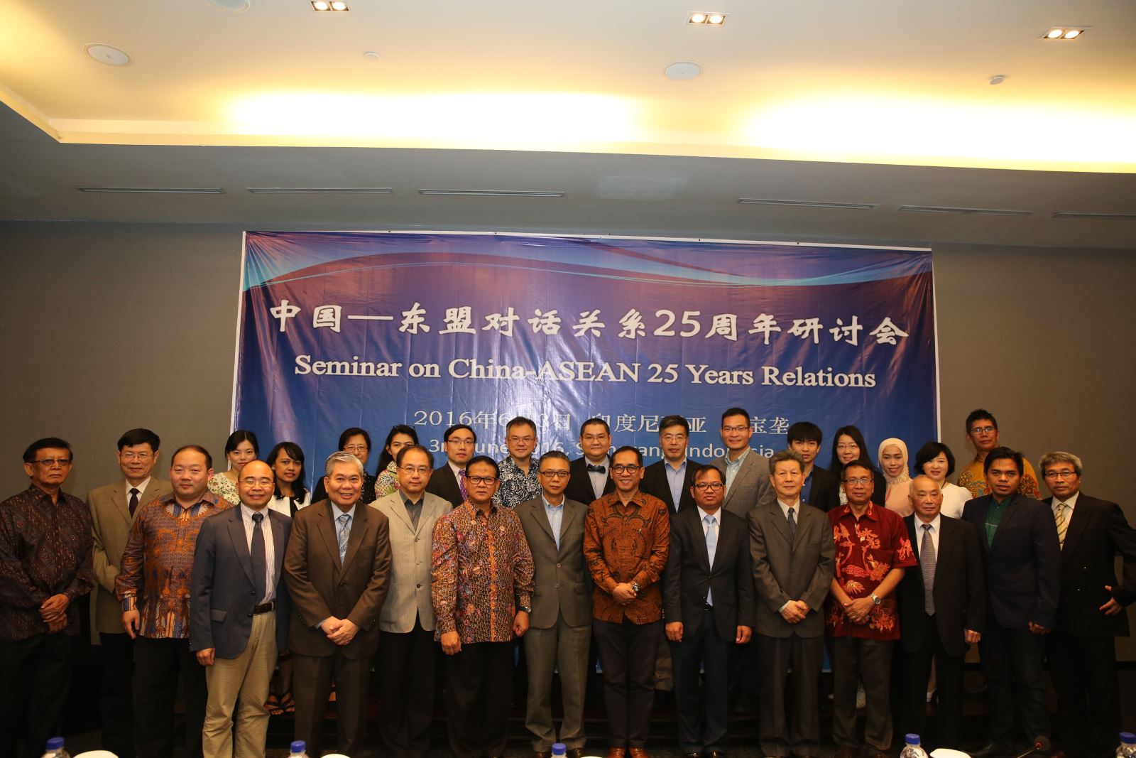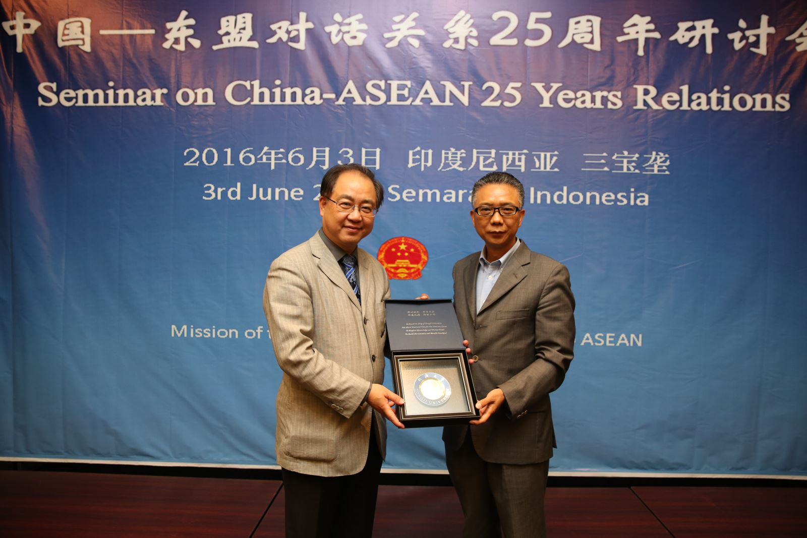 6月3日,江波一行在印尼三宝垄市参加了由中国驻东盟使团主办的“中国-东盟建立对话关系25周年研讨会”。来自中国和东盟国家约30位代表参加了会议,讨论了进一步加强中国-东盟关系的相关议题。江波在会上做了题为“人文交流和教育合作是开启中国-东盟新关系的钥匙”的发言,对目前中国-东盟教育交流和合作的成绩、面临的挑战等进行了梳理,建议从国家和地区层面机制集成、学校层面依托学科优势、人员层面加强师生来往等方面,进一步拓展和创新形式,带动实质性项目的开展,从而推进中国与东盟之间的人心相同,推进中国与东盟关系的不断向前发展。