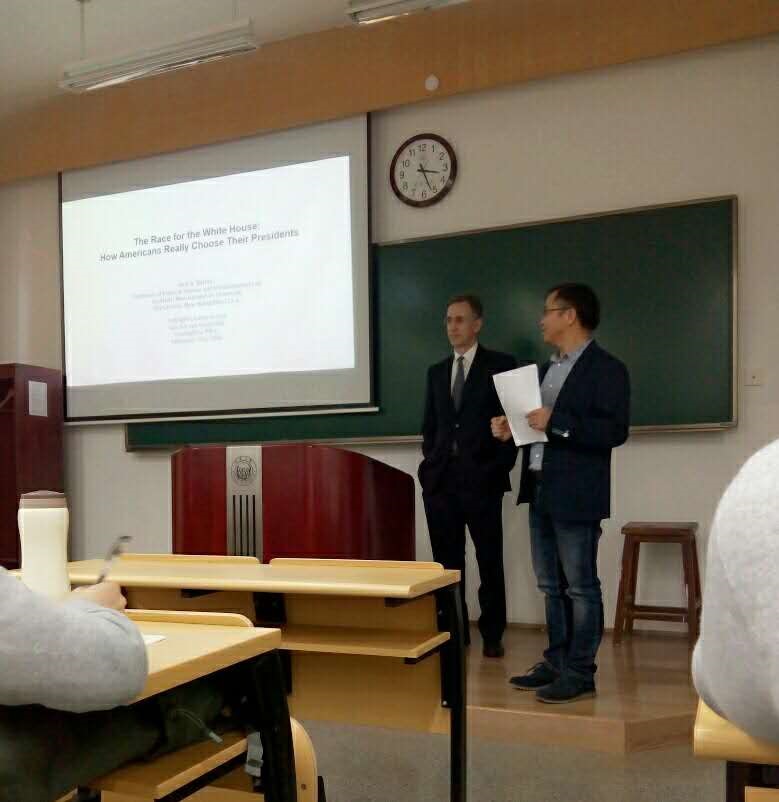 2016年5月9日下午,应同济大学半岛online(中国)国际政治系邀请,中山大学富布莱特访问学者、来自美国的南新罕布什尔大学文理学院教授Paul A. Barresi博士在南楼215室,进行了主题为“竞争白宫:美国人如何真正选择其总统?”(The Race for the White House: How Americans Really Choose Their Presidents)的讲座。来自全校的本科生、研究生参加了此次讲座。讲座由同济大学半岛online(中国)美国研究中心主任王传兴教授主持。