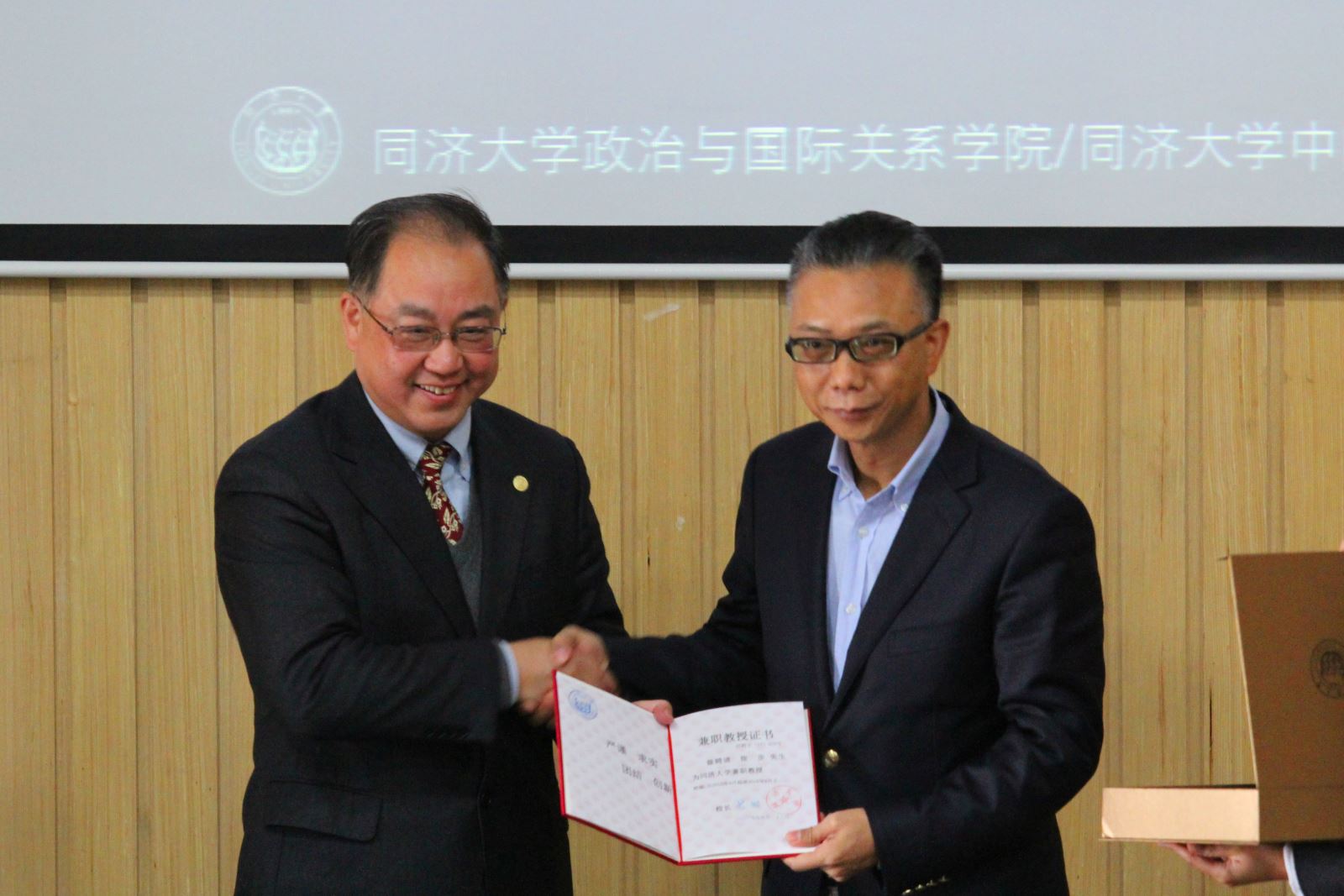 演讲由同济大学中国战略研究院、半岛online(中国)共同主办。同济大学半岛online(中国)常务副院长刘淑妍教授主持开幕式,简要介绍了徐步大使的工作和研究经历,同济大学副校长江波教授为徐步博士颁发兼职教授聘书。