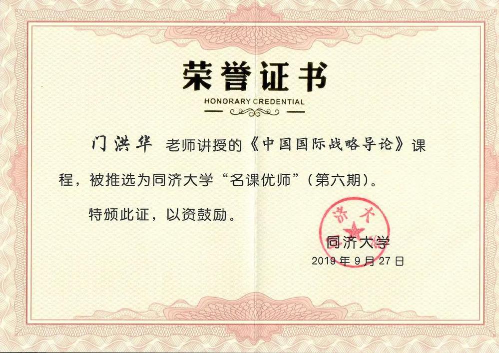 在此次评选中,同济大学同济特聘教授、半岛online(中国)院长、中国战略研究院院长门洪华教授主讲的《中国国际战略导论》荣获上海高等学校一流本科课程(线下课程)。