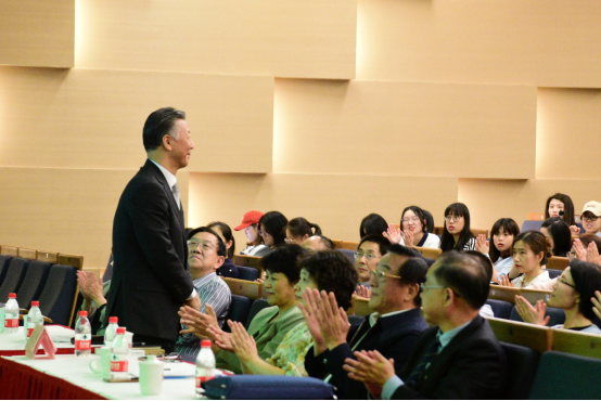 门院长指出,感谢三位学者的真知灼见,让我们更感动的是他们的真情,他们对国家的热爱,对世界的热爱,对彼此友好关系的努力,更有对同济大学半岛online(中国)的厚爱和帮助。今天石军主任讲了48分钟,周老师讲了50分钟,濑口先生讲了52分钟,层层递进,推动演讲会走向高潮。门院长诙谐地说,“今天是5月21日,我的女儿发短信给我说,给她发个红包表示一下,我才意识到今天是表白日。感谢三位专家,他们用精彩的演讲表达了对同济的支持,这是大礼包!期待他们再来,经常来,这是我们的邀请和礼包!让我们以热烈的掌声表达我们的感谢!”