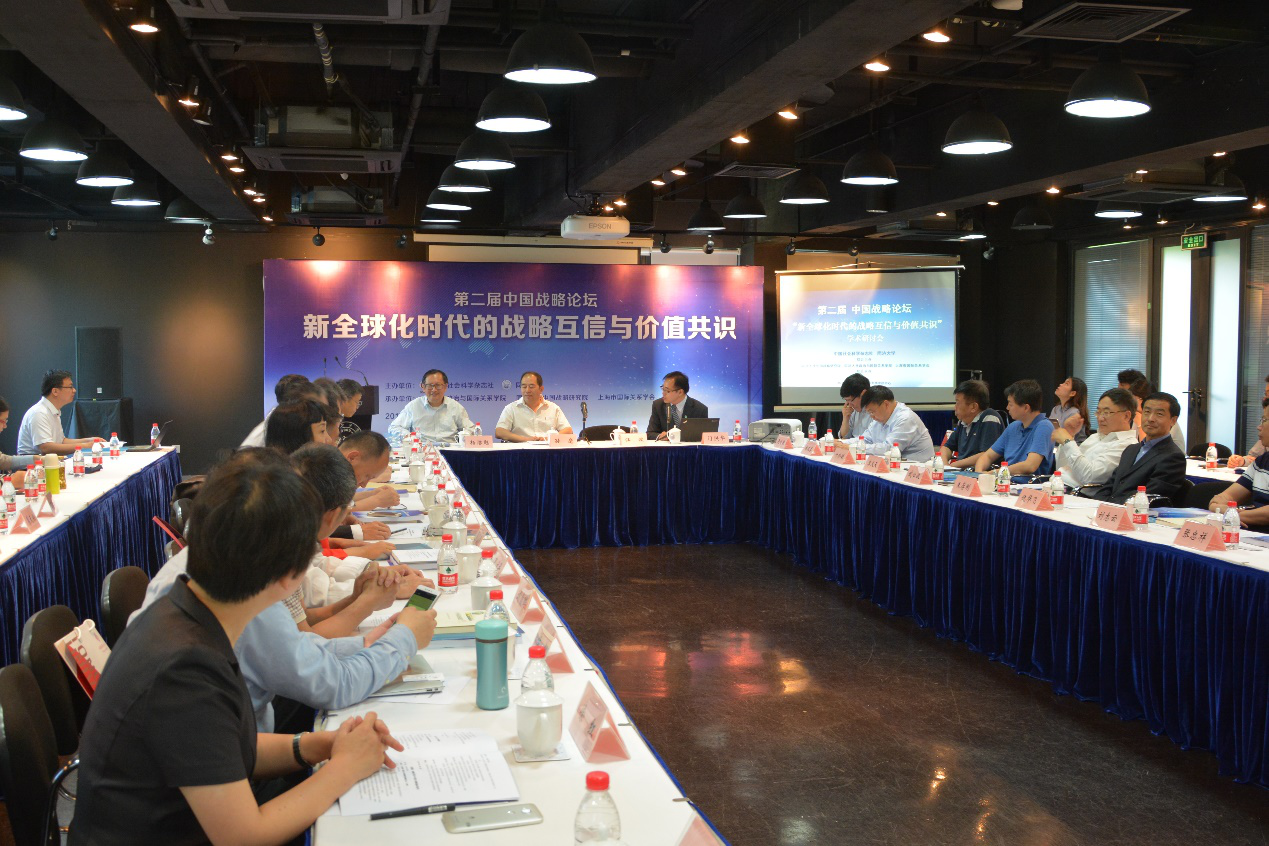 第一场研讨以“新全球化与中国发展的时代逻辑”为议题,由杨洁勉研究员主持。其间,复旦大学哲学院吴晓明教授以“中国方案开启新型战略互信与价值共识”为题提出,中国方案是中国道路在特定阶段上发展起来的观念体系,它一方面通过中国自近代以来的历史性实践得到展开、实现和论证,另一方面也开始在国际舞台上亮相并产生影响。中国方案显然包含着新型的战略互信与价值共识的基础,其中包含着三方面哲学思考:第一,先前的战略互信与价值共识是在现代性中被规定的,而现代性正在进入终结阶段;第二,中国当今的发展或民族复兴事业不仅是现代化,而且是开启新文明类型的可能性;第三,中国方案开启的战略互信与价值共识不局限于现代性范围之内,而是以新文明类型为基本定向的。总体而言,中国方案所形成的战略互信与价值共识的性质不再是传统的“霸道”,而是新型的“王道”。清华大学国情研究院院长胡鞍钢教授围绕“中国文化软实力与国际影响力展望”,充分运用了定量与定性分析相结合的研究方法。他首先探索了如何将国际影响力转换为可计算的比较性概念。通过经济影响力、货币机制、科技能力、对外投资以及文化软实力等要素和变量,确定国际影响力的量化加权。依据其研究统计,2003年的中国国际影响力相当于美国的1/5,但2015年则上升为美国的40%。可以说,中国的崛起符合经济崛起先行,相关影响力随后溢出的逻辑。与此同时,文化软实力与经济、政治、军事等领域的影响力相比,既有区别也有联系。一个国家如何把它的硬势力转化为软实力,把它的综合国力在短的时间内转化为它的国际影响力显得格外重要。为此,中国需要坚持建设文化软实力强国、全面提升国际影响力,从而通过文化软实力和国际影响力对人类发展做出巨大贡献。《求是》杂志社国际部主任杨发喜编审以“为万世开太平——人类命运共同体理念在地球村时代的战略价值”为题,交流了关于“人类命运共同体”的感想:第一,“人类命运共同体”的提出凸显了中国深厚的文化自信。作为具有战略价值的理念,只有扎根文化历史传统才能富有生命力、长期性和世界性。第二,中国的历史实践也证明“人类命运共同体”是可行的。第三,“人类命运共同体”和战略互信面临现实挑战,需要更强的文化自信和理论自信做支撑。第四,战略互信和“人类命运共同体”要树立在合作共赢的基础上。