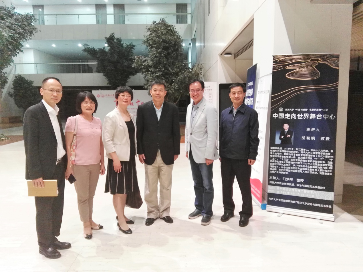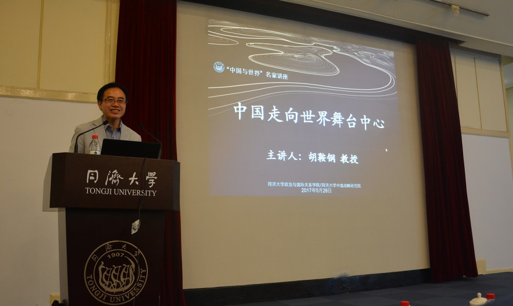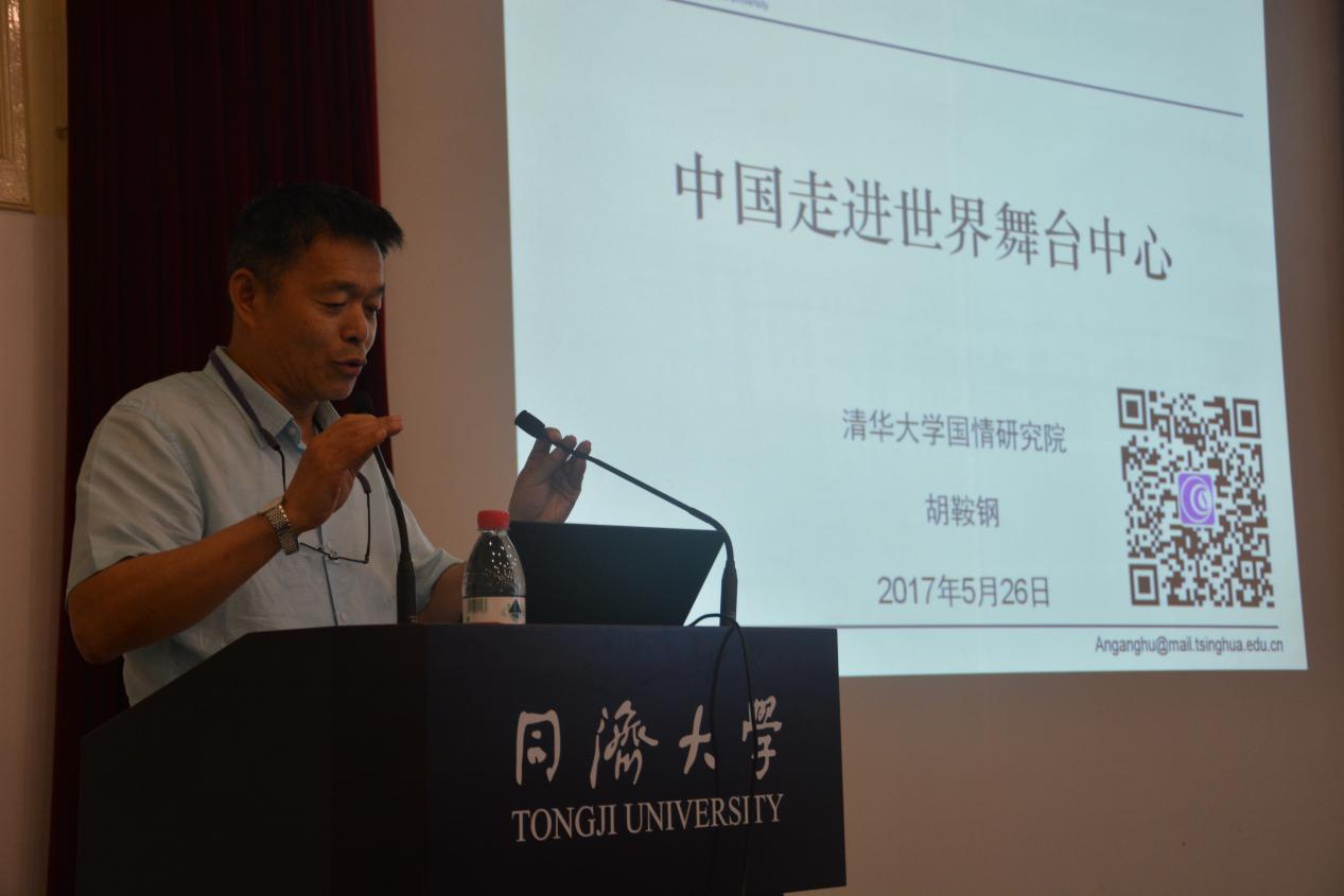2017年5月26日,由同济大学中国战略研究院、同济大学半岛online(中国)联合主办的同济大学“中国与世界”名家系列讲座第十三讲在同济大学逸夫楼成功举办。中国著名中国国情专家、清华大学国情研究院院长、清华大学公共管理学院博士生导师胡鞍钢教授发表主题为“中国走向世界舞台中心”的演讲。同济大学同济特聘教授、半岛online(中国)院长兼中国战略研究院院长门洪华教授主持本次活动。同济大学副校长江波、同济大学半岛online(中国)党委书记徐红教授等老师以及来自同济大学、复旦大学、上海外国语大学等高校的200余名师生参加了活动。