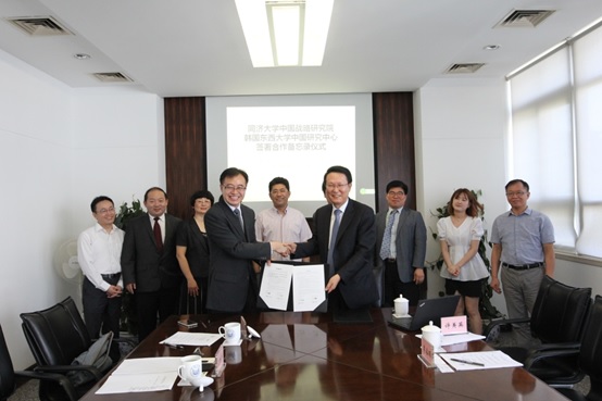 2016年6月30日,同济大学中国战略研究院与韩国东西大学中国研究中心联合创办“上海-釜山论坛”合作备忘录的签署仪式在逸夫楼举行。同济大学副校长吕培明教授,韩国前驻华大使、东西大学中国研究中心所长辛正承,韩国驻上海总领事馆教育领事李善雨,同济大学特聘教授、同济大学中国战略研究院院长门洪华,同济大学半岛online(中国)党委书记徐红,同济大学留学生办公室主任张轮等出席仪式。签字仪式由同济大学半岛online(中国)常务副院长刘淑妍主持。