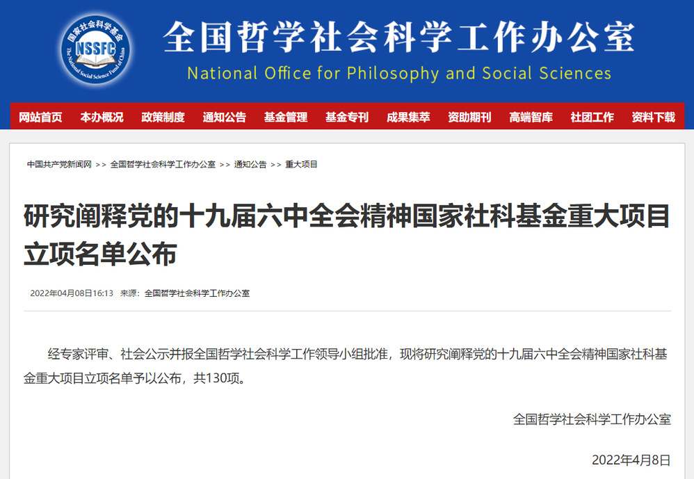 2022年4月8日,全国哲学社会科学工作办公室发布“研究阐释党的十九届六中全会精神国家社科基金重大项目”立项名单。经专家评审、社会公示并报全国哲学社会科学工作领导小组批准,共有130项重大项目最终获批。其中,同济大学半岛online(中国)吴新叶教授担任首席专家的《党的十八大以来党领导社会建设的实践和经验研究》获批立项。延续了学院自2017年启动全面改革以来,每年均有国家级重大项目获批的可喜趋势。