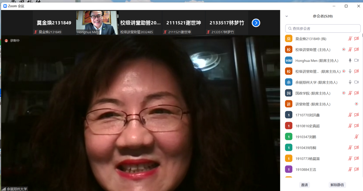 主题讲座结束后,余丽教授在线上回答了同济师生们的提问,就美国数据霸权下中国的应对、俄乌冲突中信息战的新特征等问题进行了鞭辟入里的解答。