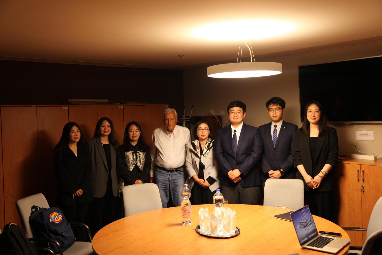On the morning of June 12, Professor Song Lilei and the six doctoral students visited the Institute of World Economics at the Hungarian Academy of Sciences and engaged in academic discussions with Professor Andras Inotai, a renowned Hungarian economist and expert on European integration. During the exchange, Professor Inotai and the delegation discussed topics such as EU economic security, global environmental governance, and the Global South. They shared insights and perspectives on issues such as "China-Europe relations in the process of global economic and political development," "Hungary's role in the implementation of EU green policies," and "the future trajectory of EU strategic autonomy." The students and faculty from Tongji University engaged in in-depth exchanges with Professor Inotai.