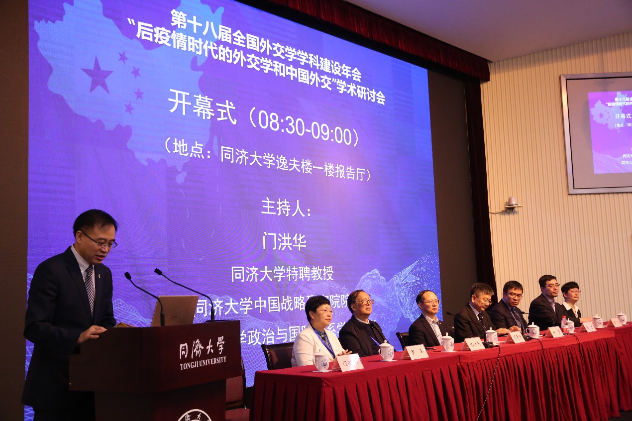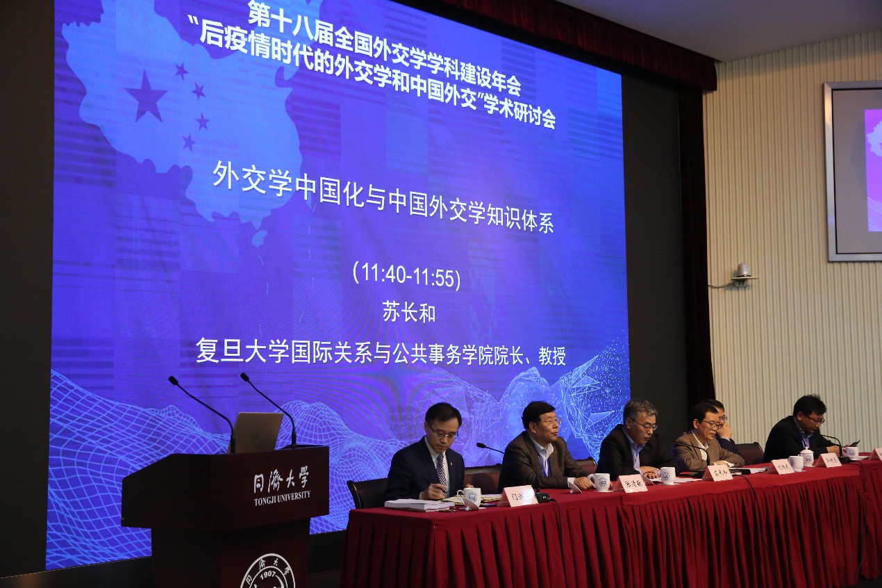 Nearly 100experts and scholars from the Ministry of Foreign Affairs, China Foreign Affairs University, China Institute of International Studies (CIIS), Peking University, Tsinghua University, Fudan University, Tongji University, Jilin University, Wuhan University, Nankai University, Beijing Normal University, Sichuan University, Shandong University, Lanzhou University, China University of Political Science and Law (CUPL), Shanghai International Studies University, Shanghai Academy of Social Sciences, Shanghai Institutes for International Studies (SIIS), National University of Defense Technology (NUDT), Jinan University, Central China Normal University (CCNU), Zhejiang Normal University (ZJNU), and China Centre for International Science and Technology Exchange (CISTE) gathered at Siping campus of Tongji University to discuss about the research on China's diplomatic theory and practice in the post-Covid era around the theme of 'the Discipline of Diplomacy and China's Diplomacy in the Post-Covid Era'. The meeting was held to encourage domestic academia to engage in mutual learning and cooperation for disciplinary development, and pool academic consensus and ideological wisdom on the development of China's diplomacy in the new era.