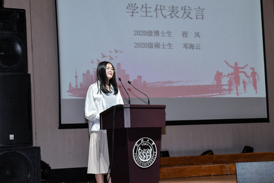 Deng Haiyun, a postgraduate student of 2020, delivered a speech