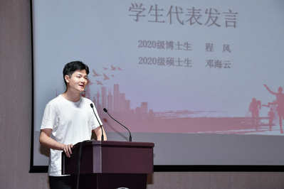 Cheng Feng, a doctoral candidate of 2020, delivered a speech