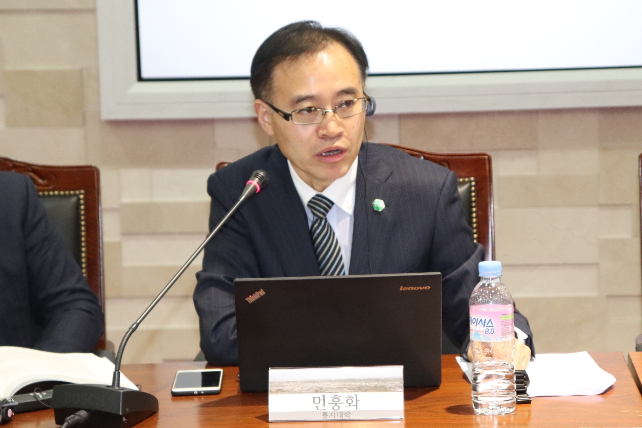 Prof. Feng Shenhong, Deputy Secretary of the Party Committee of Tongji University, and H.E. Guo Peng, Consul-General of the Consulate General of China in Busan, delivered speeches successively at the opening ceremony. Prof. Feng expected more productive cooperation between South Korea and China and between Busan and Shanghai under the Belt and Road Initiative. He pointed out that with the joint efforts of related parties in the region, positive changes have been taking place in the peninsula, especially reflected in the signing of the Pyongyang Joint Declaration after South Korean President Moon Jae-in’s visit to North Korea. Feng expressed his sincere gratitude to the hosts for carefully preparing this event and wish it a complete success.
