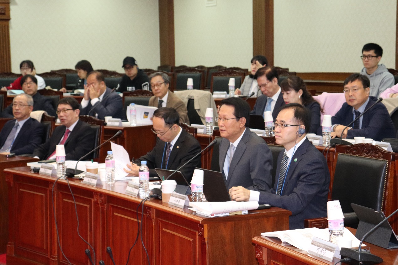 Then, the panel sessions kicked off. Ambassador Shin moderated the first session themed “Situation in Northeast Asia and Trend of the Korean Peninsula”. The four panelists included Cho Seong-ryoul, a professor at INSS, Wang Cungang, a professor at SPSIR, Chun Sung-heung, a professor at Sogang University, and Xia Liping, a professor at SPSIR.