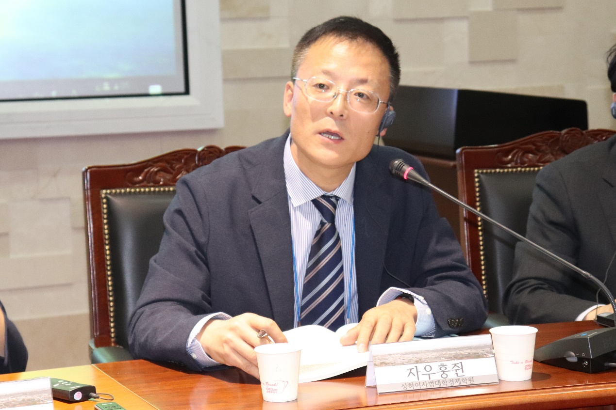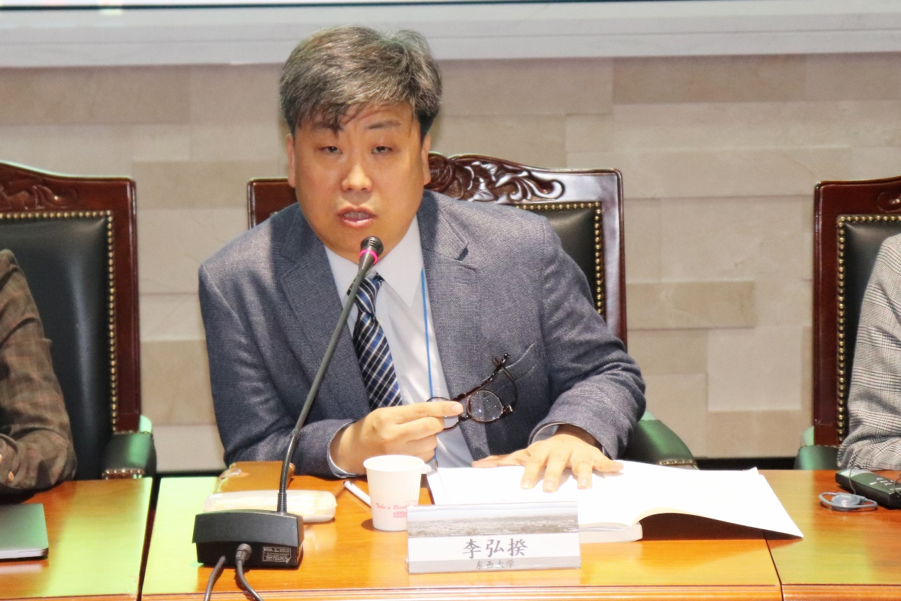 With the theme of “Shanghai-Busan Cooperation”, the fourth session was moderated by Prof. Wu Yun, Dean of the School of Foreign Languages of Tongji University. The four panelists were Zhao Hongjun, a professor at the School of Finance and Business of SHNU, Lee Myung-hee, a professor at the School of Design of DSU, Ge Tianren, an assistant professor at SPSIR, and Jeon Seong-wook, a professor at the Department of Korean Language and Literature of Dong-A University.