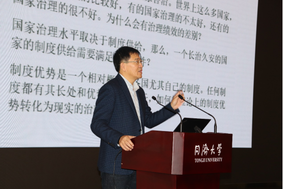 Hosted by the Institute for China & World Studies and the School of Political Science & International Relations (SPSIR) of Tongji University, the Tongji Serial Lectures on Social Sciences No.18 & the Tongji Advanced Lectures for Graduate Students No.41 was successfully held in the lecture hall on the first floor of Yifu Building, Siping Campus, Tongji University on November 22, 2019. Professor Yan Jirong, Executive Vice Dean of the School of Government at Peking University and a Changjiang Scholar, was invited to give a keynote speech entitled “Academic Topic on the Modernization of State Governance” for Tongji teachers and students. This lecture was moderated by Professor Xu Hong, Secretary of the Party Committee of SPSIR.