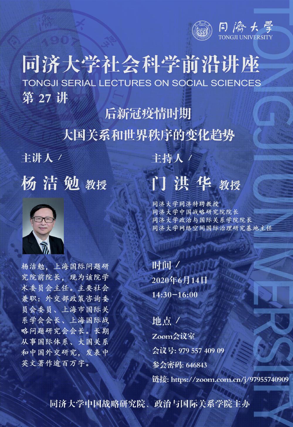 【社会科学前沿讲座】后新冠疫情时期大国关系和世界秩序的变化趋势